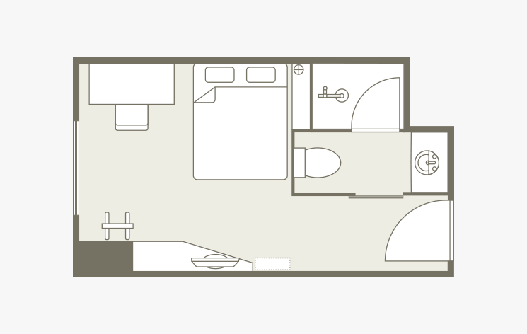 お部屋の間取りはあくまで一例です。面積や家具の配置、備品などはお部屋により異なりますので、あらかじめご了承ください。