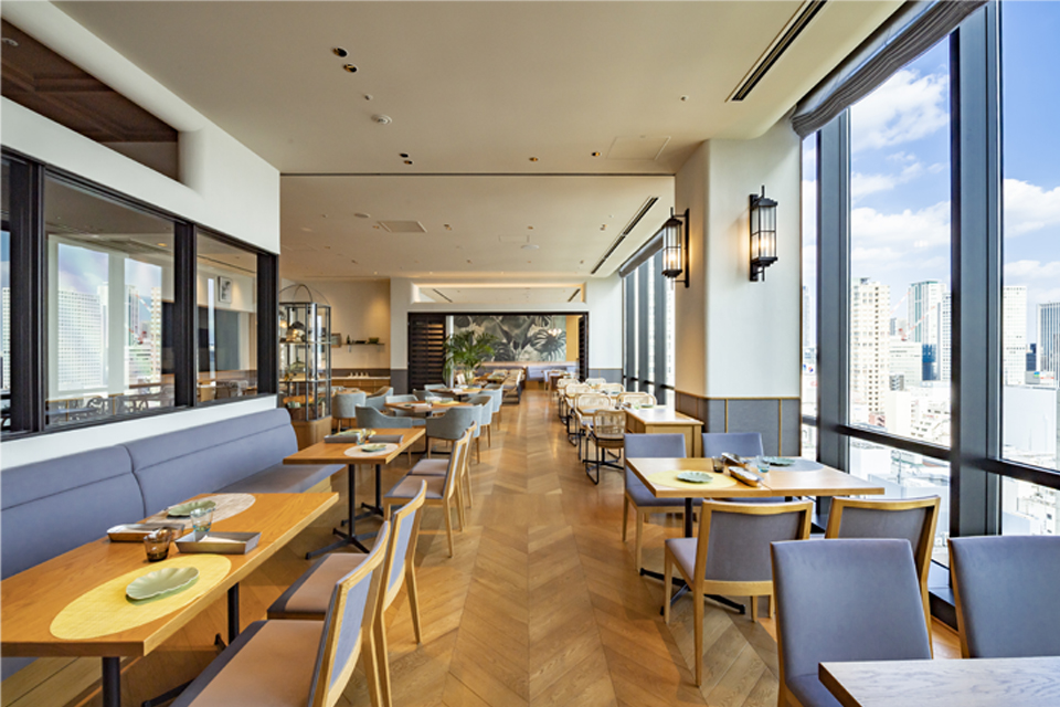 ホテル最上階・17階のレストランでは、御堂筋に面した大きな窓から明るい日差しが差し込む開放的な空間で、シェフこだわりのお料理をお楽しみいただけます。