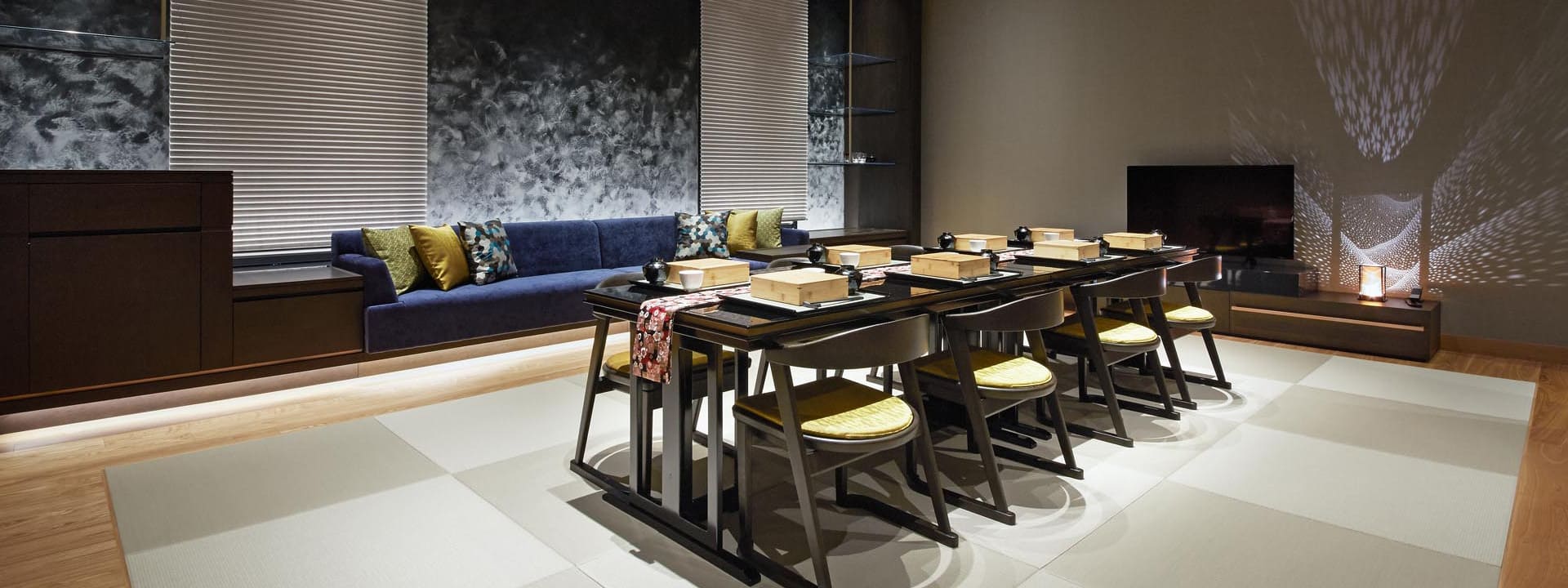 寺院の山門と一体になった当ホテルらしい和の空間。