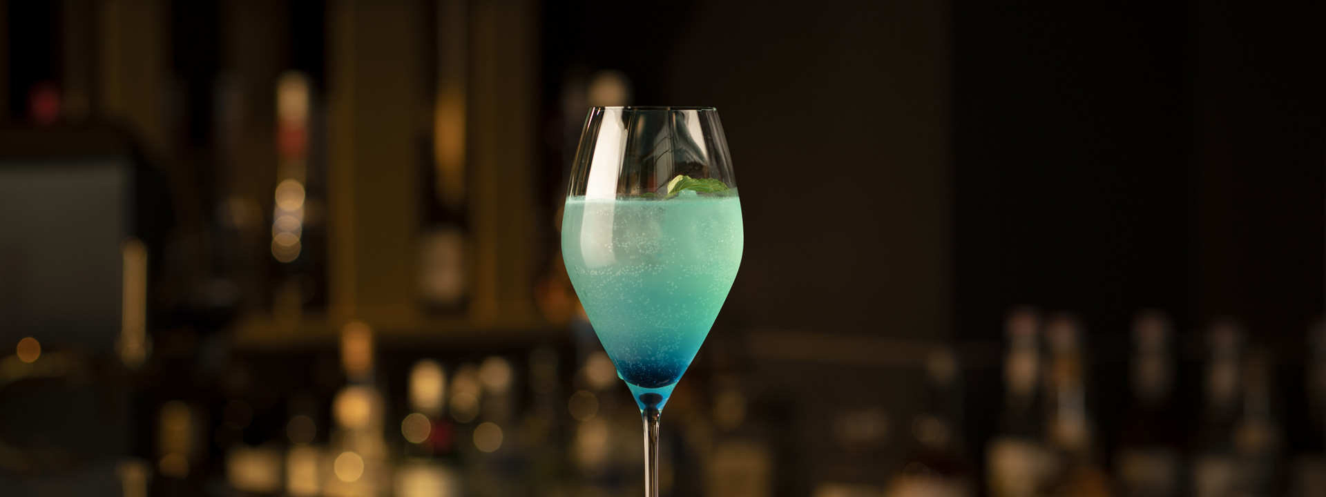水都大阪をイメージさせるブルーが鮮やかなカクテルと、