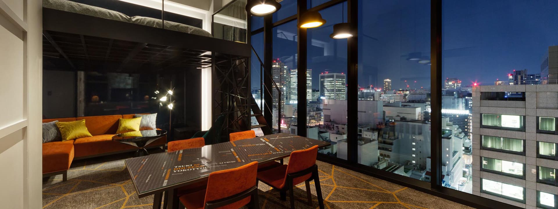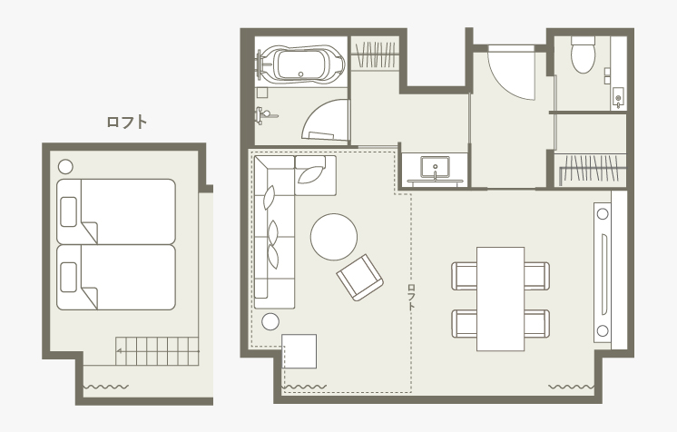 ロフトやテーブル、ソファを配し、さまざまなくつろぎのスタイルをご提供。グループでの旅が一層楽しく。