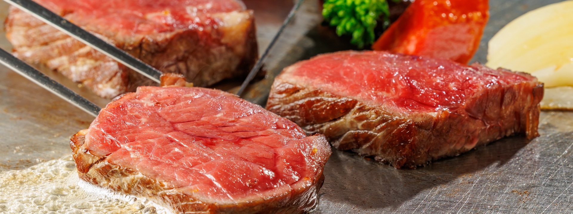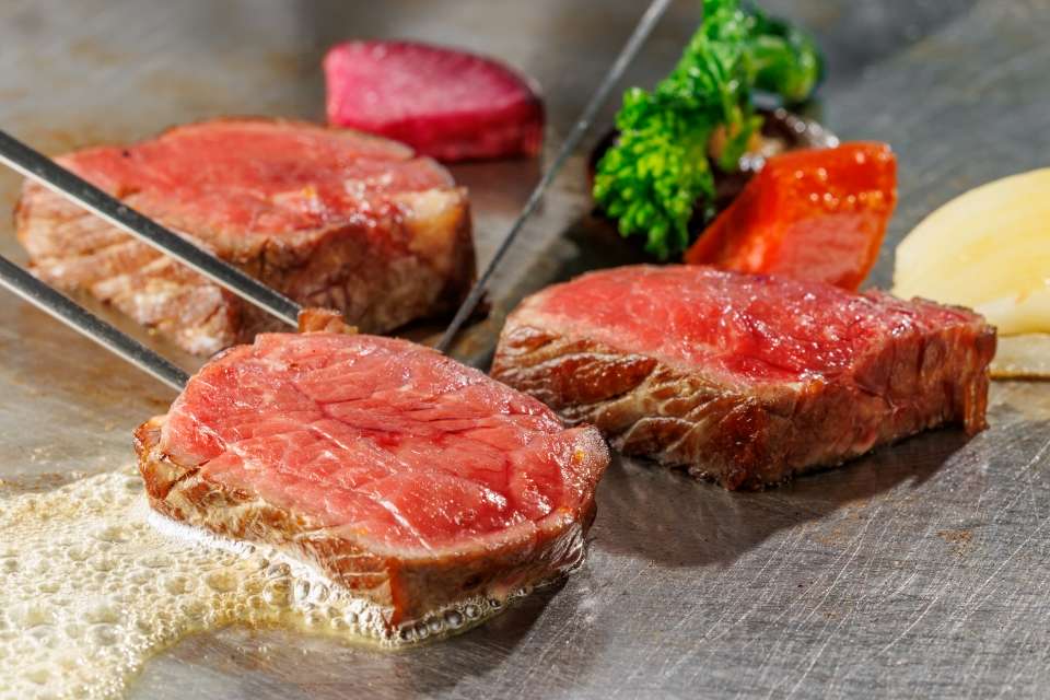 ミニステーキをシェフが目の前の鉄板で焼いてご提供いたします(おひとり様一皿)。