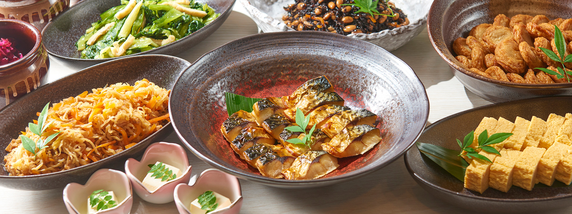 (ひじき、切り干し大根、茄子揚げ浸しなど) -