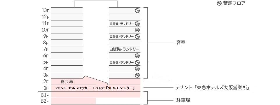 ビール、ソフトドリンクの自動販売機を5F・7F・9F・11Fに