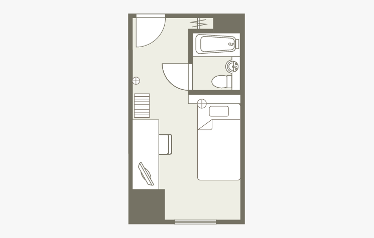 お部屋の間取りはあくまで一例です。面積や家具の配置、備品などはお部屋により異なりますので、あらかじめご了承ください。
