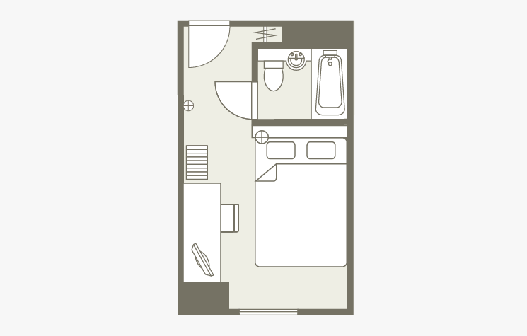 お部屋の間取りはあくまで一例です。面積や家具の配置、備品などはお部屋により異なりますので、あらかじめご了承ください。