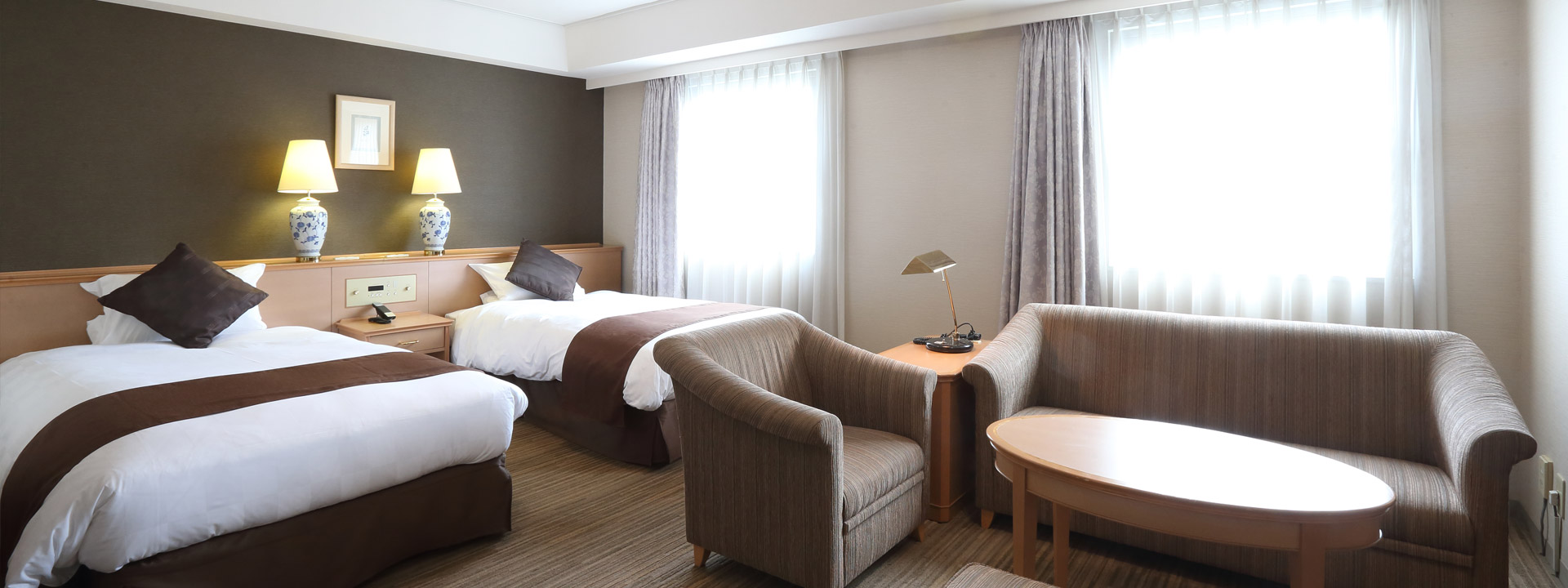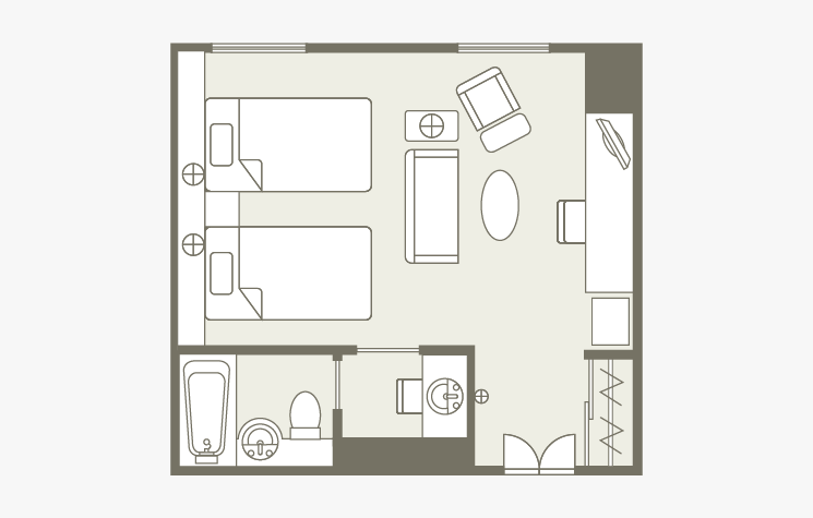 お部屋の間取りはあくまで一例です。面積や家具の配置、備品などはお部屋により異なりますので、あらかじめご了承ください。