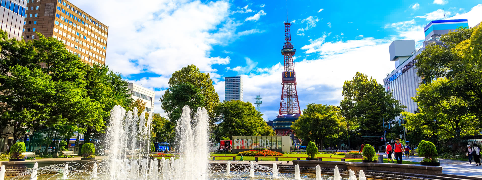 東西1.2kmにわたる花壇や噴水が美しい大通公園。西1丁目に立つ高さ147.2mのテレビ塔の展望台からは地上90m360度の眺望が楽しめます。春からは秋はトウキビワゴンが出店、ビアガーデンやよさこいソーラン祭り、雪まつりなど札幌のさまざまな風物詩の舞台に。なかでもホワイトイルミネーション(11月中旬~1月上旬)は、雪化粧した街並みを多彩な光の装飾が幻想的に演出して、最高にロマンチック。