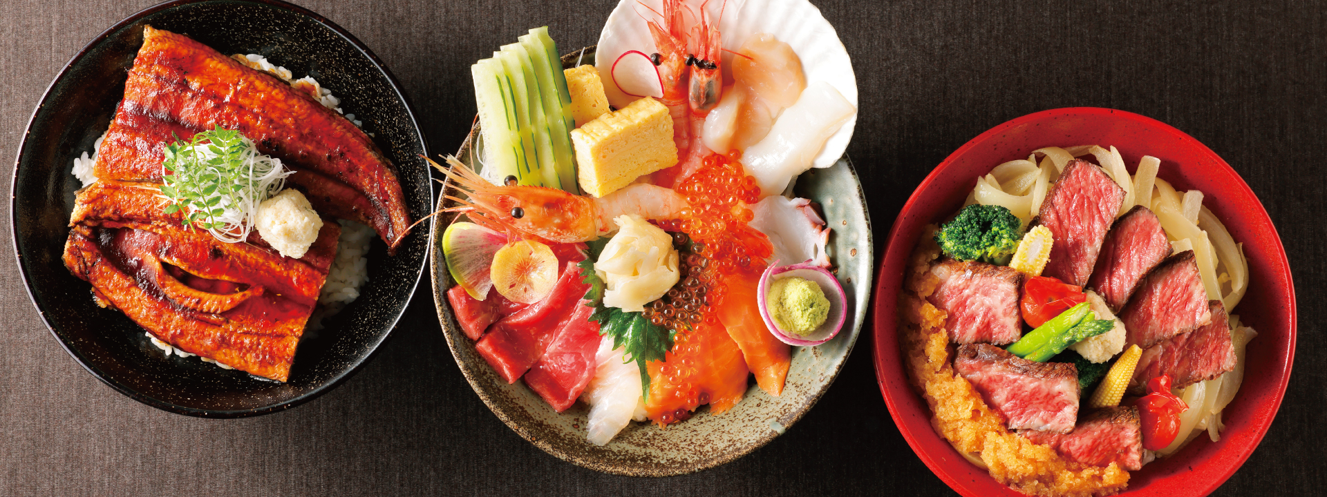 素材にこだわった、選べる3種の丼ぶり御膳。