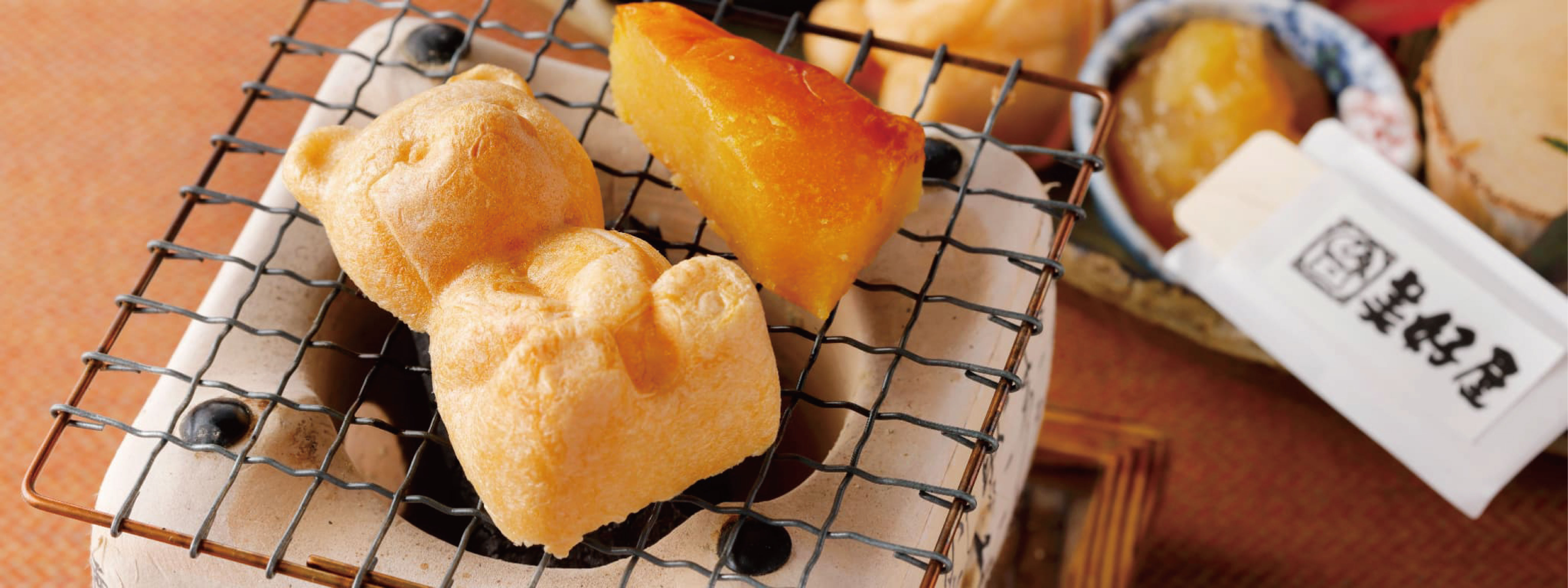 「くまもなか」や「スイートポテト」はお席にご用意する七輪で炙っても美味しく召し上がれます。