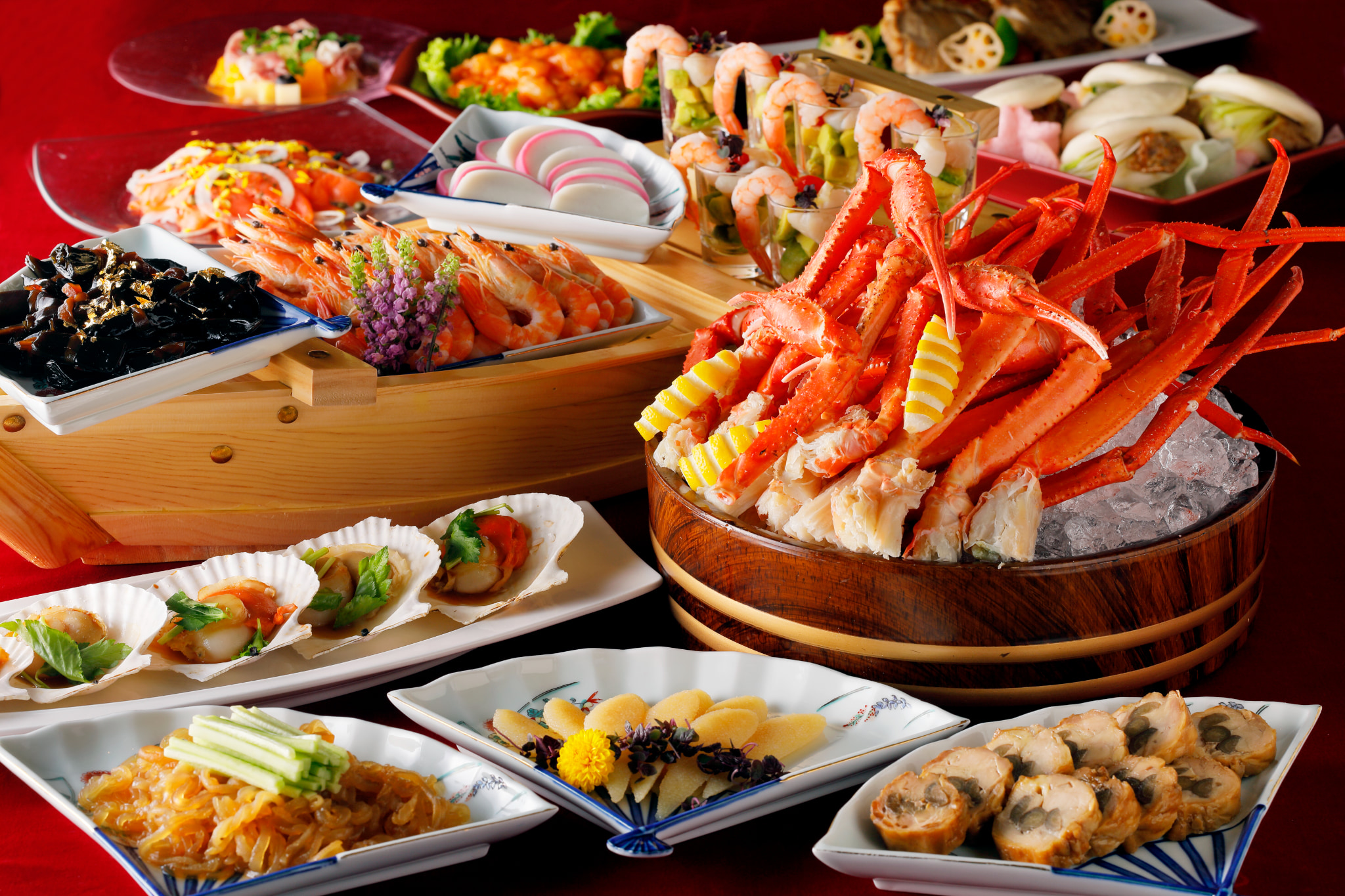道産牛ローストビーフや道産の紅ズワイガニなど和洋中全45種90分間食べ放題。