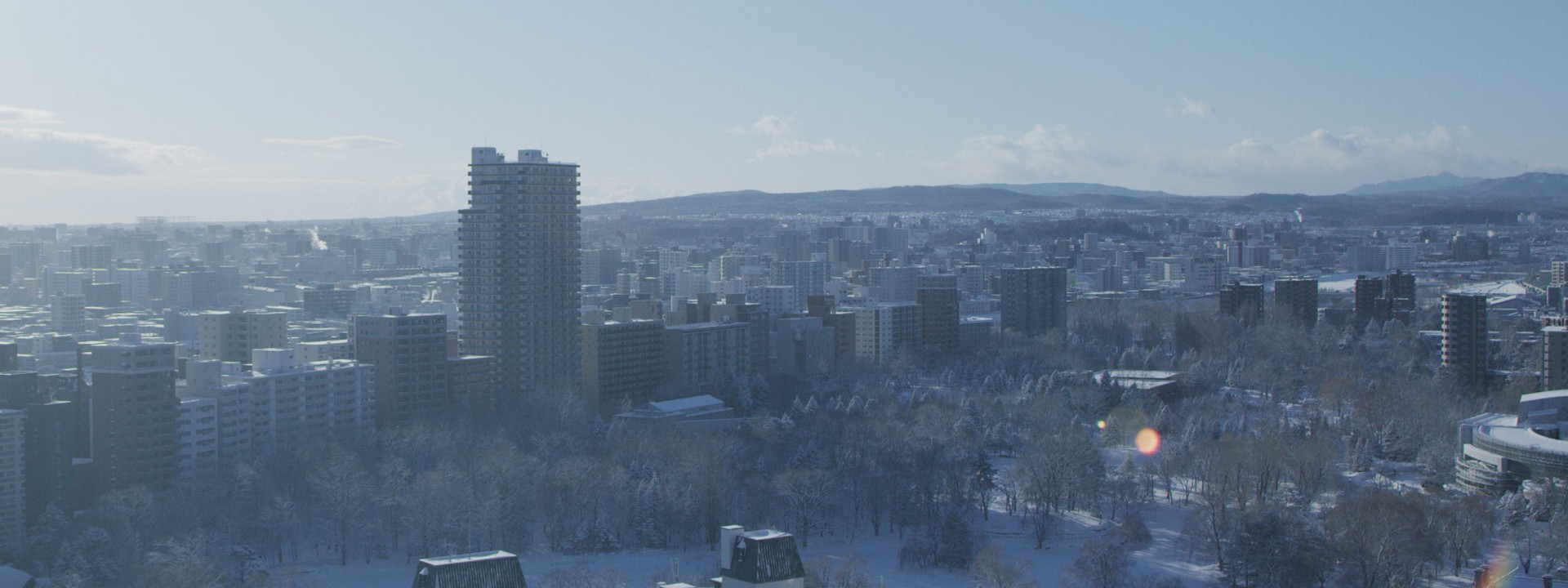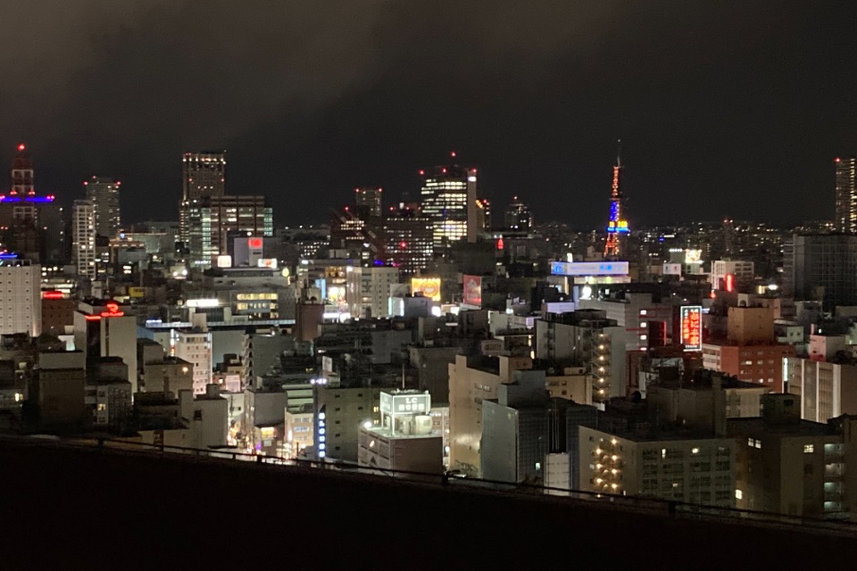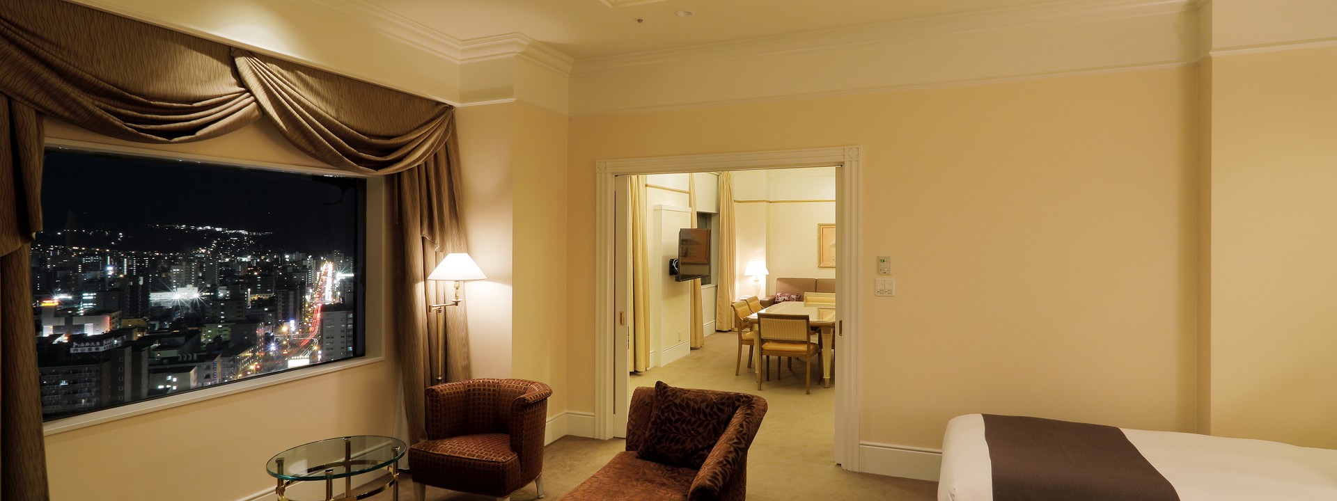 札幌の街並みを望むホテルのスイートルーム、屋上から
