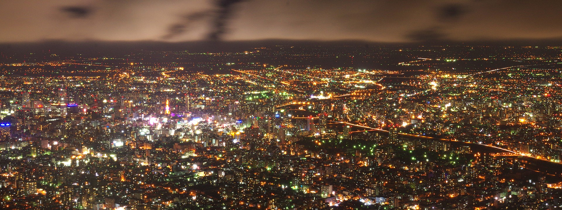 夜には札幌駅と歓楽街ススキノを結ぶ赤いテールランプが幻想的な風景を創り出します。