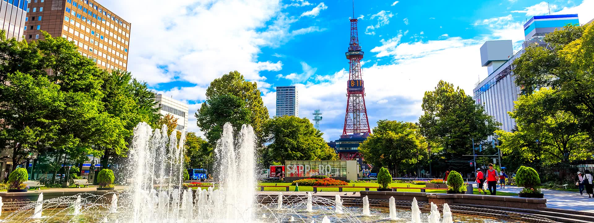 東西1.2kmにわたる花壇や噴水が美しい大通公園。西1丁目に立つ高さ147.2mのテレビ塔の展望台からは地上90m360度の眺望が楽しめます。春からは秋はトウキビワゴンが出店、ビアガーデンやよさこいソーラン祭り、雪まつりなど札幌のさまざまな風物詩の舞台に。なかでもホワイトイルミネーション(11月中旬~1月上旬)は、雪化粧した街並みを多彩な光の装飾が幻想的に演出して、最高にロマンチック。