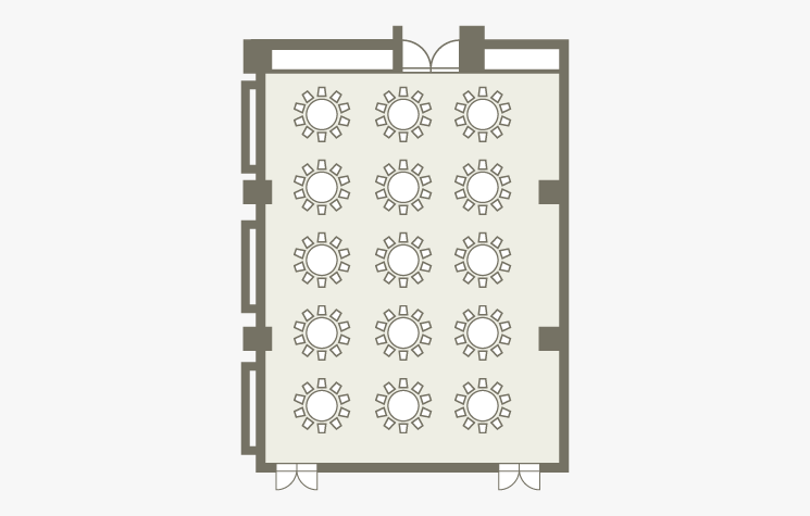 「RETRO&MODERN」(レトロ&モダン)をテーマに、ガス灯をイメージした照明と、札幌の碁盤の目の街並みを表現した絨毯が目を引く会場です。シックで統一感のある空間で会議やご宴会、同窓会などさまざまなシーンでご利用いただけます。