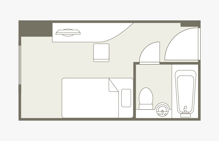 お部屋の間取りはあくまで一例です。面積や家具の配置、備品などはお部屋により異なりますので、あらかじめご了承ください。