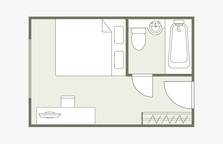 お部屋の間取りはあくまで一例です。面積や家具の配置、備品などはお部屋により異なりますので、あらかじめご了承ください。