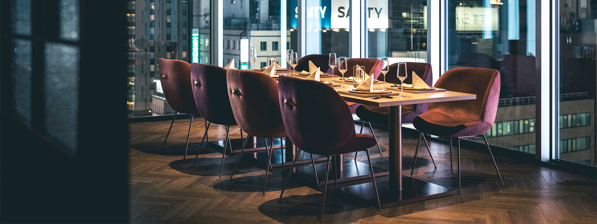 すすきの交差点を見下ろせるプライベートルーム。スマートカジュアルにピッタリな空間で、ご友人とのお集りや接待にも。