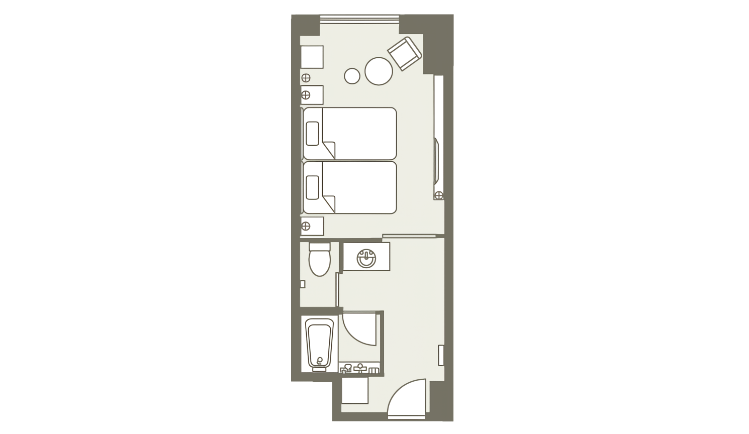 お部屋の間取りはあくまで一例です。面積や家具の配置、備品などはお部屋により異なりますので、あらかじめご了承ください。