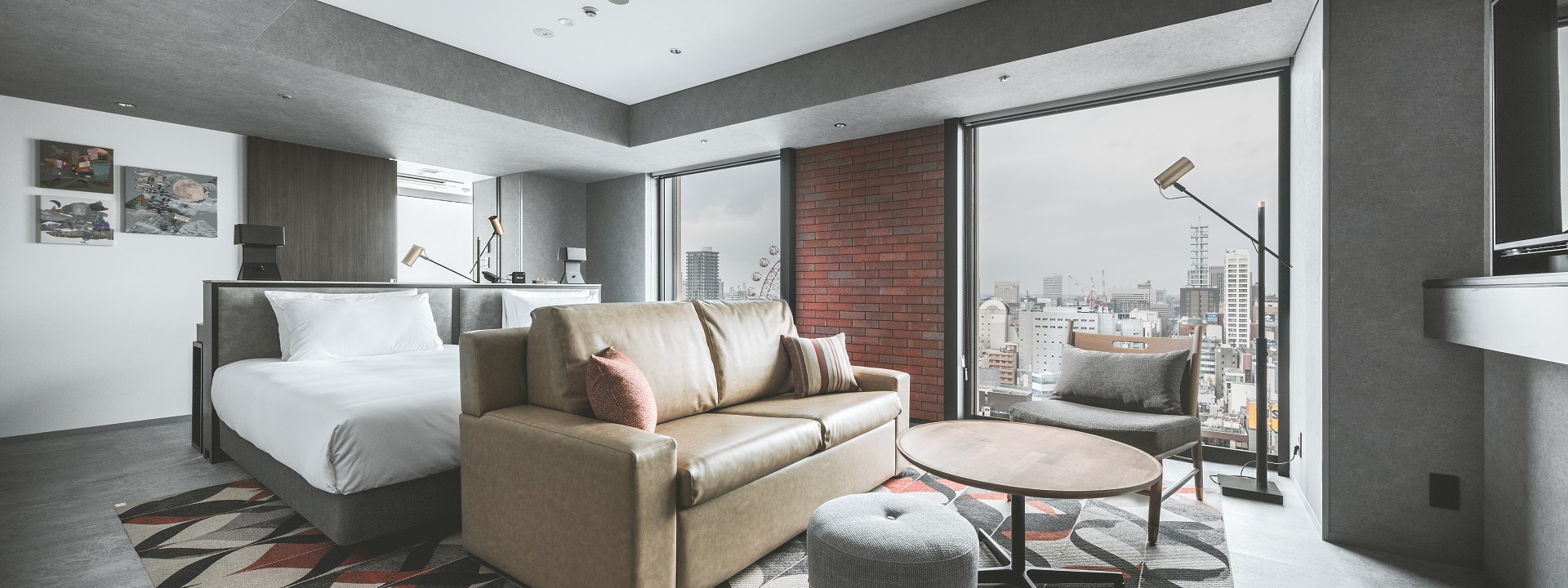 西側に面した角部屋のアイランド側ベッド配置が特徴的なお部屋です。目前には景色を彩る大きな観覧車も望めます。