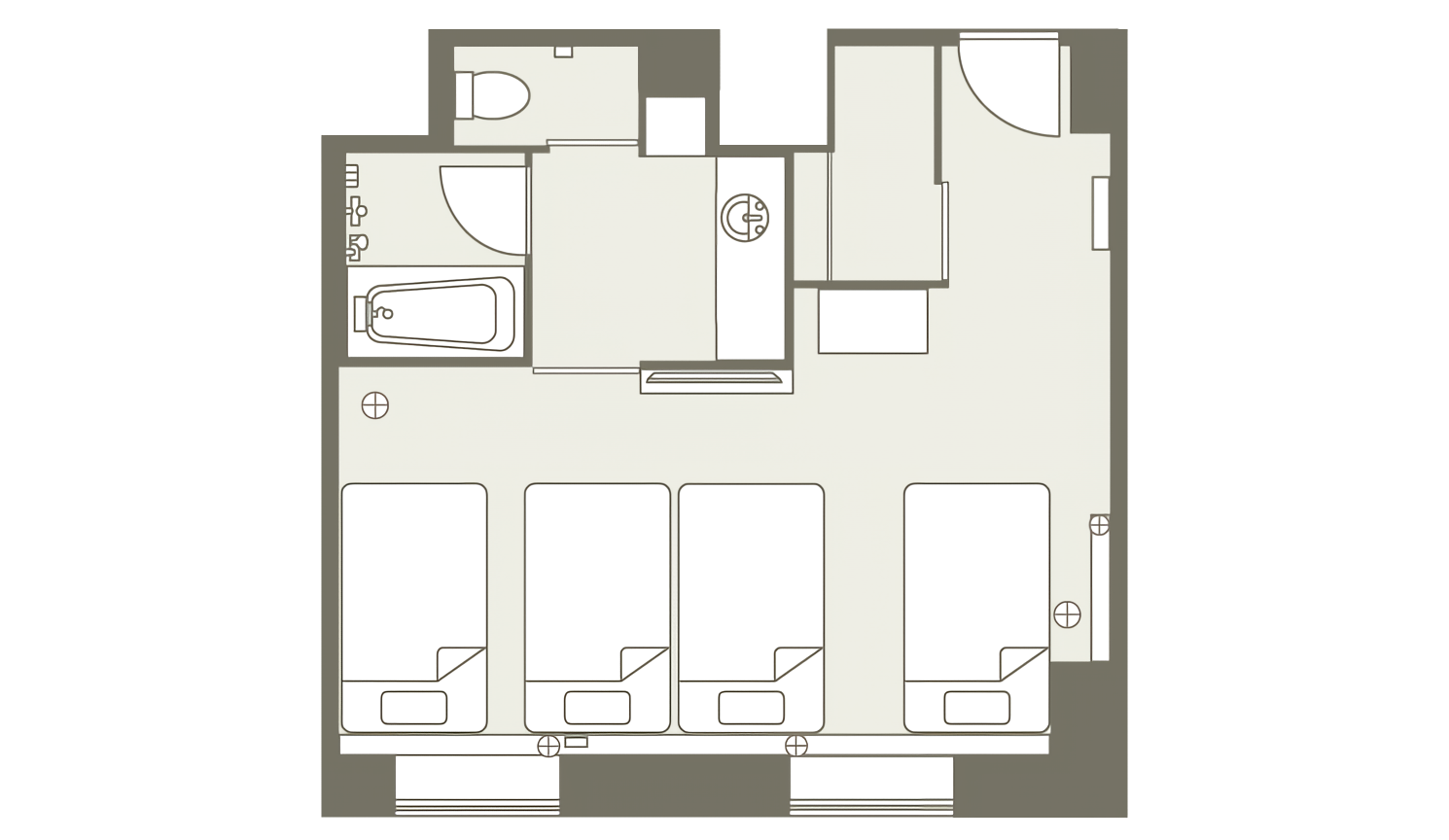 ホテルで唯一4名様まで横並びのベッドでご利用が可能。ご家族・グループでのご旅行に最適です。