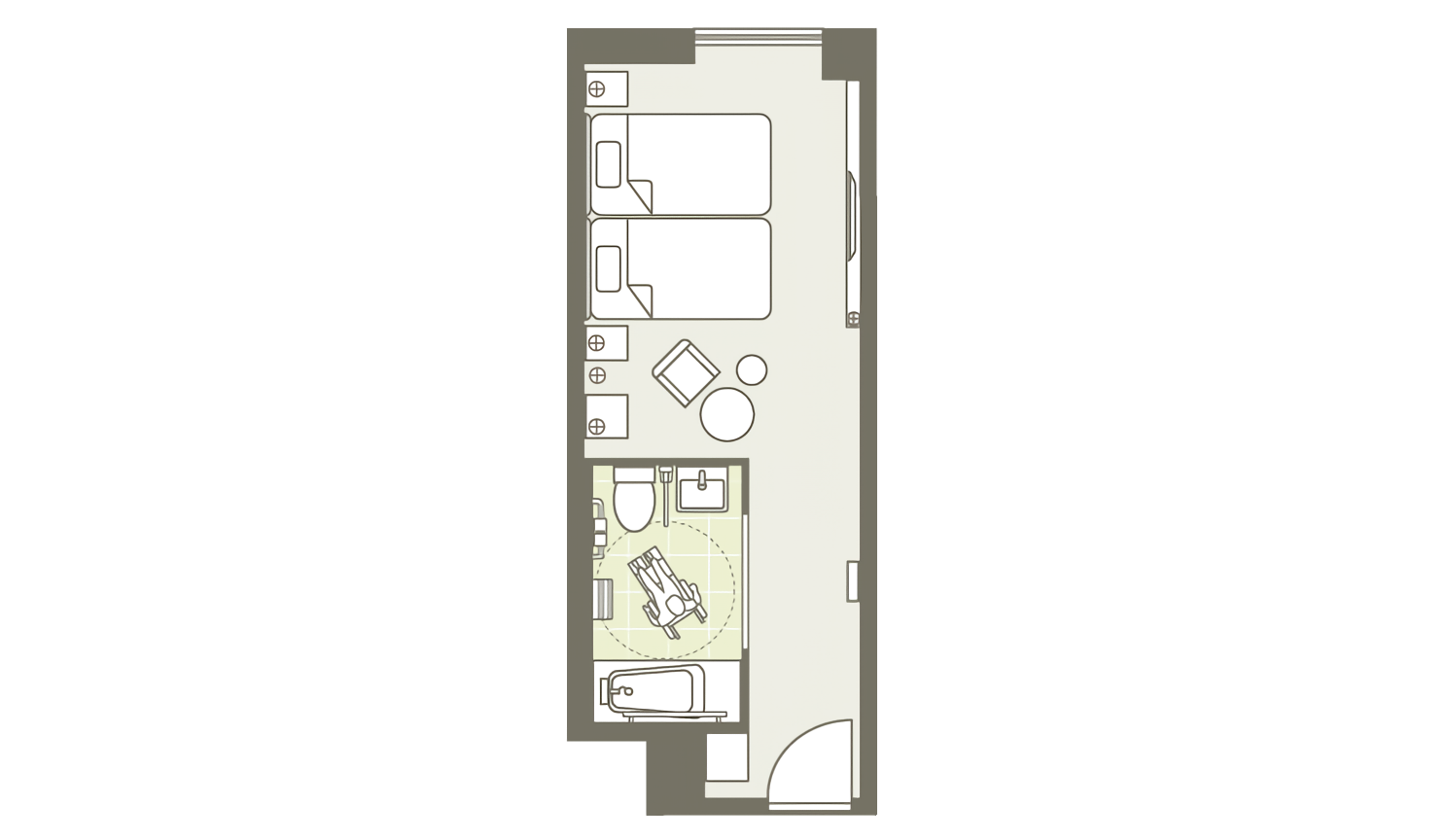 お部屋の間取りはあくまで一例です。面積や家具の配置、備品などはお部屋により異なりますので、あらかじめご了承ください。