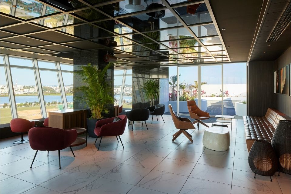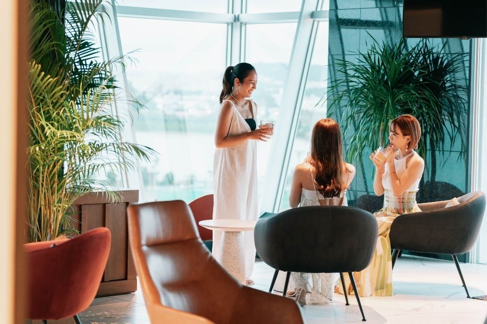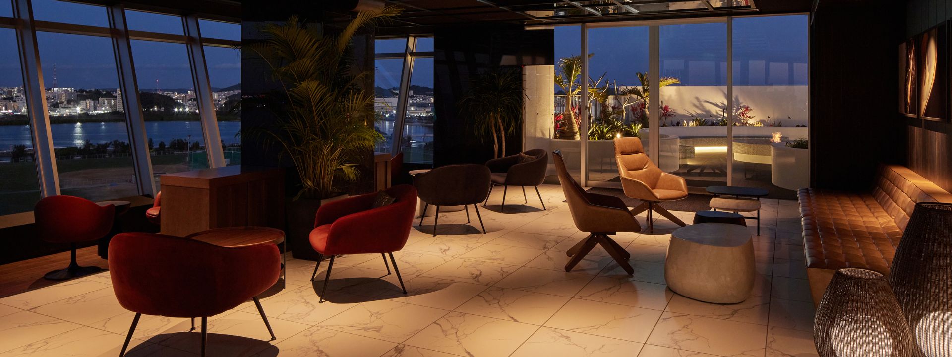 宿泊のお客様が無料でご利用いただける宿泊者専用ラウンジ「スカイルーム」は管制塔をモチーフにデザインした空間で、ソフトドリンクからアルコールまで、セルフサービスでお楽しみいただけます。