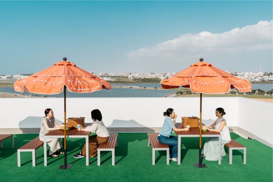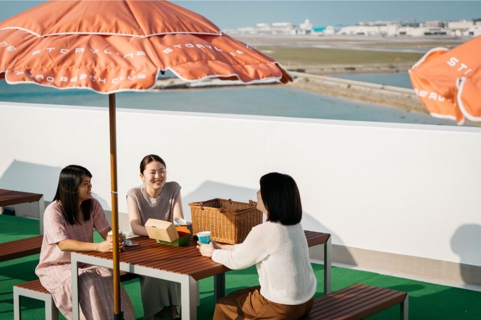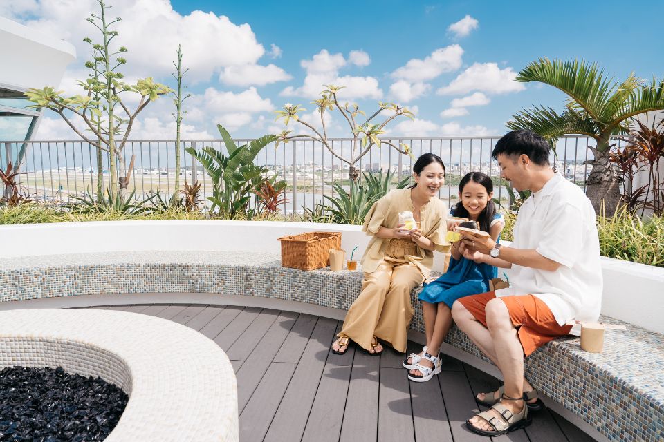階段を下ると開放的な景色が広がり、空と海を望む癒しのひとときをお楽しみいただけます。