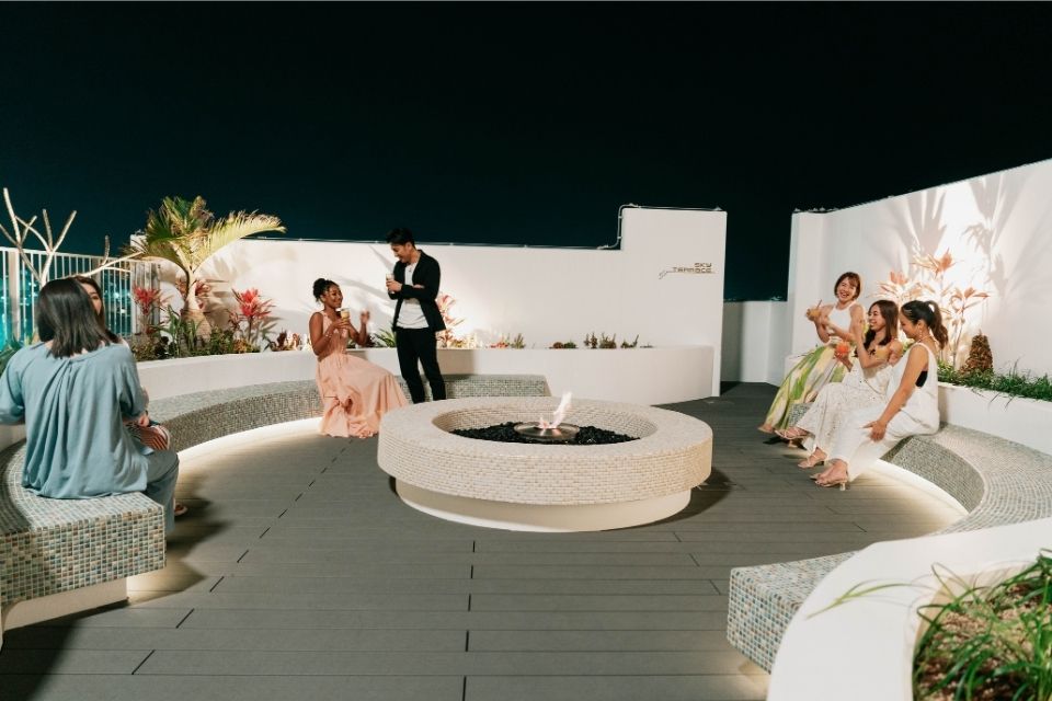 スカイルームの奥へ進むと広がるファイヤーピット。