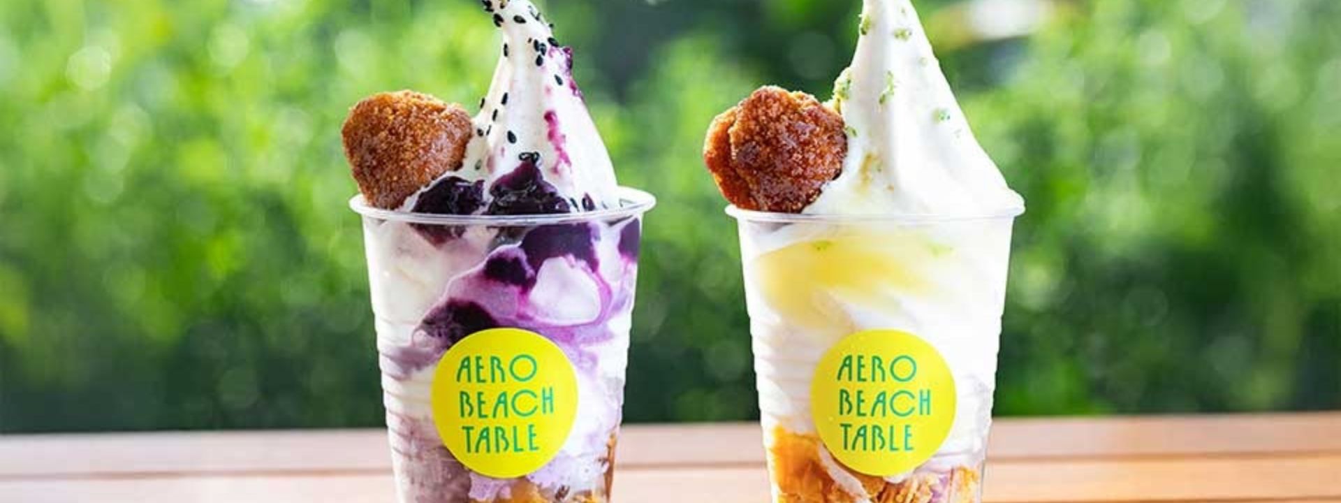 オリジナルのミニパフェを気軽なテイクアウトスタイルで、食後の〆スイーツとしてお楽しみいただけます。海風と空を感じるテラス席でお過ごしください。各種軽食やドリンクなども。