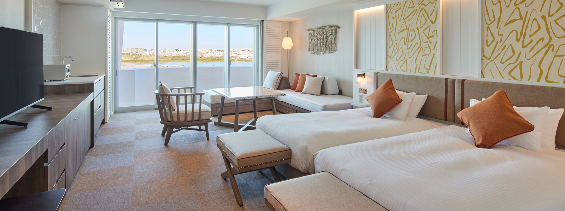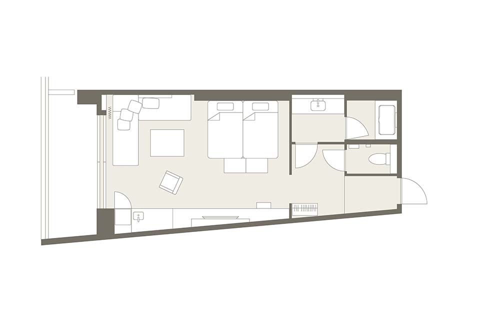 お部屋の間取りはあくまで一例です。面積や家具の配置、備品などはお部屋により異なりますので、あらかじめご了承ください。