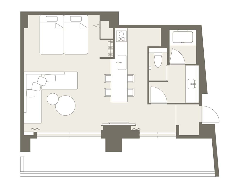 お部屋の間取りはあくまで一例です。面積や家具の配置、備品などはお部屋により異なりますので、あらかじめご了承ください。