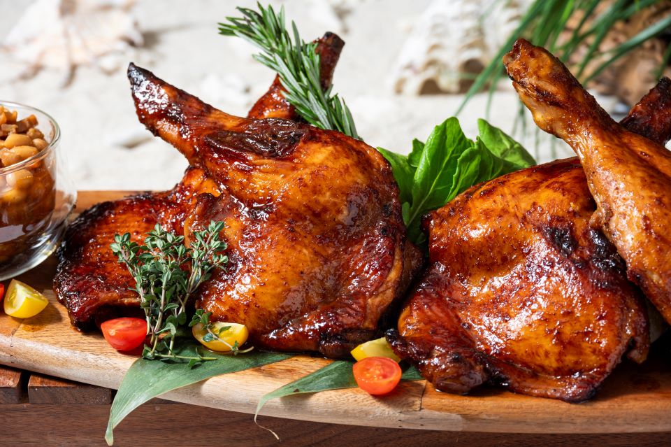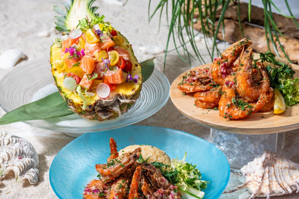 料理長 滝本 雅之が趣向を凝らした南国の魅力溢れる料理をお楽しみいただけます。皮目はパリっと、身はジューシーに焼き上げた「フリフリチキン」や、殻ごと柔らかに揚げた海老をパンチのきいたガーリックライスと一緒に楽しむ「ソフトシュリンプフライ」など、ホテルならではの美食をご堪能ください。