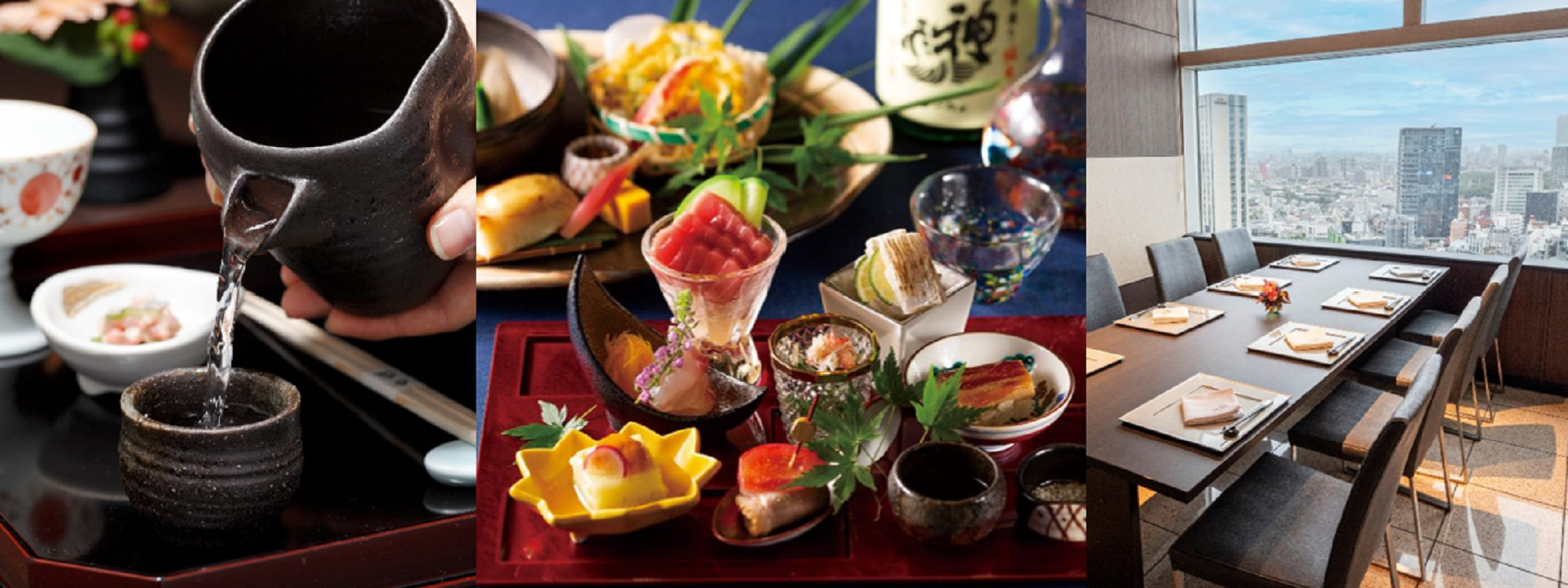 四季折々の食材を用いた会席料理と、多彩なフリードリンクを地上25階からの眺望とともに