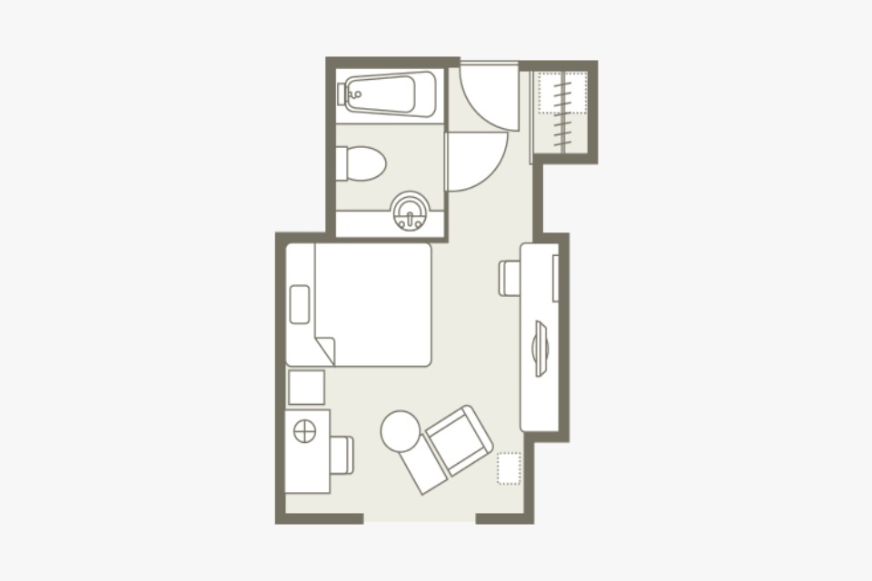 お部屋の間取りはあくまで一例です。面積や家具の配置、備品などはお部屋により異なりますので、あらかじめご了承ください。