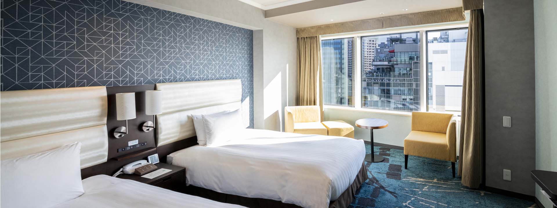 お部屋の間取りはあくまで一例です。面積や家具の配置、備品などはお部屋により異なりますので、あらかじめご了承ください。