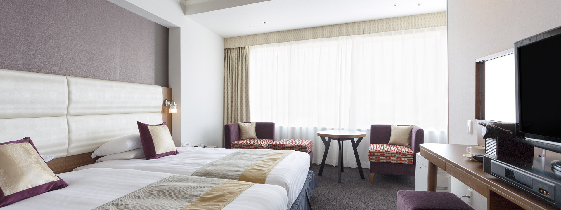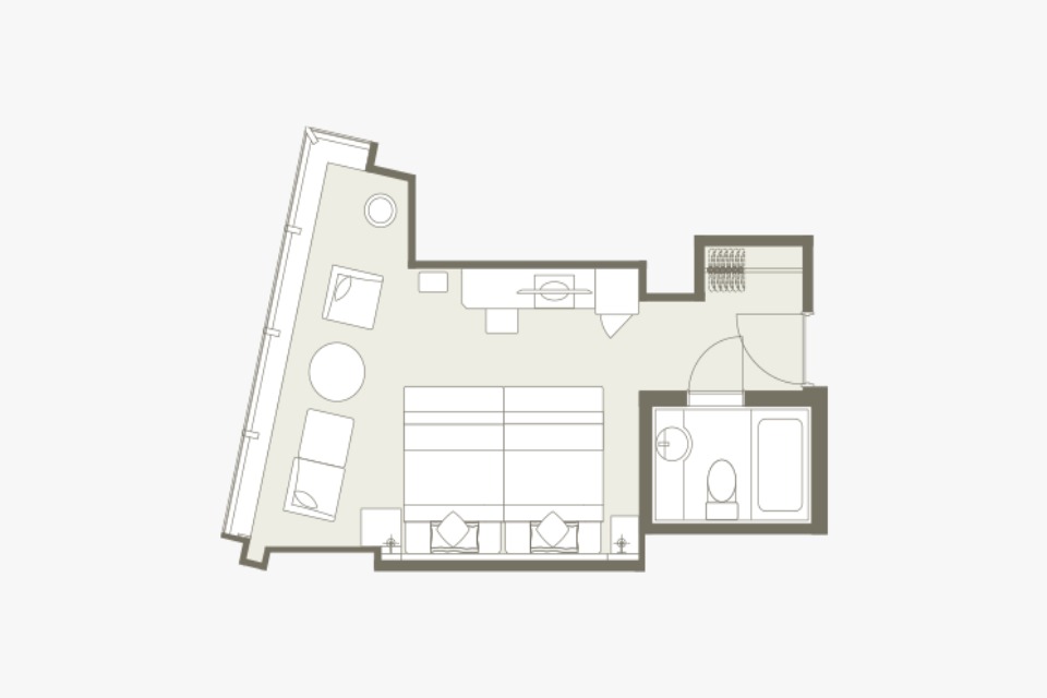 お部屋の間取りはあくまで一例です。面積や家具の配置、備品などはお部屋により異なりますので、あらかじめご了承ください。