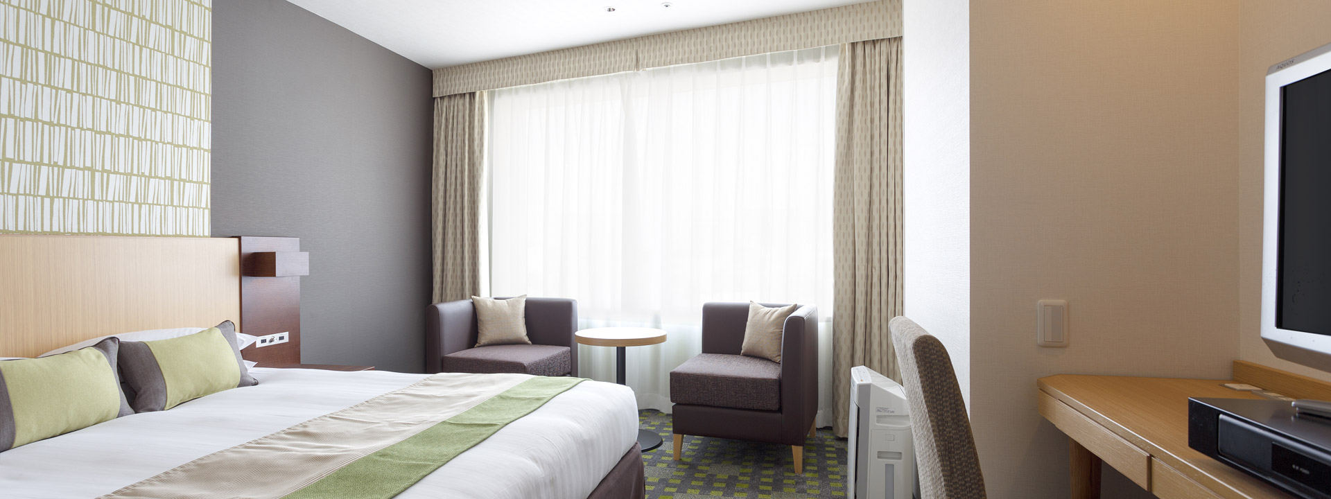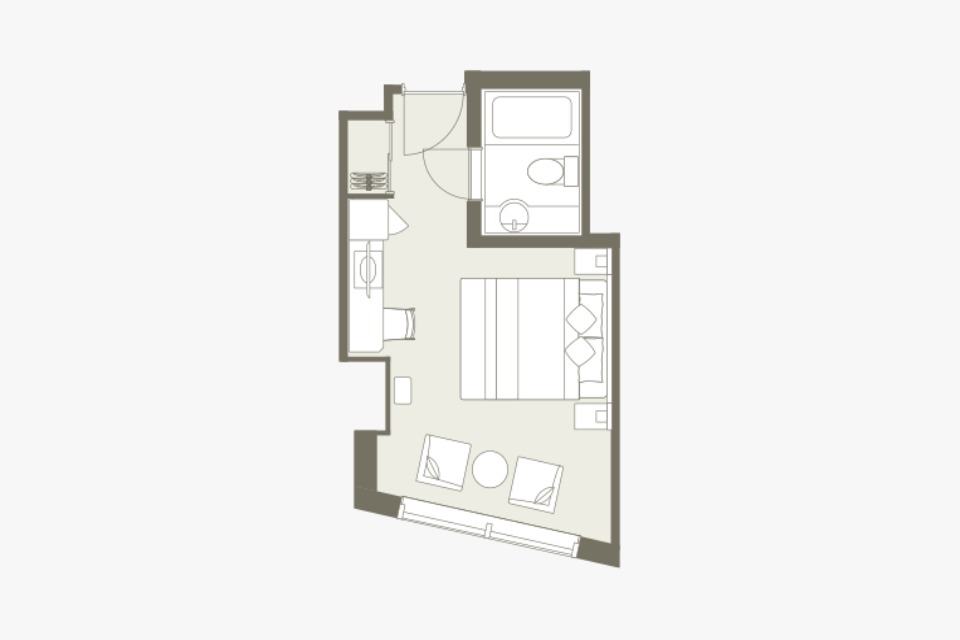 お部屋の間取りはあくまで一例です。面積や家具の配置、備品などはお部屋により異なりますので、あらかじめご了承ください。