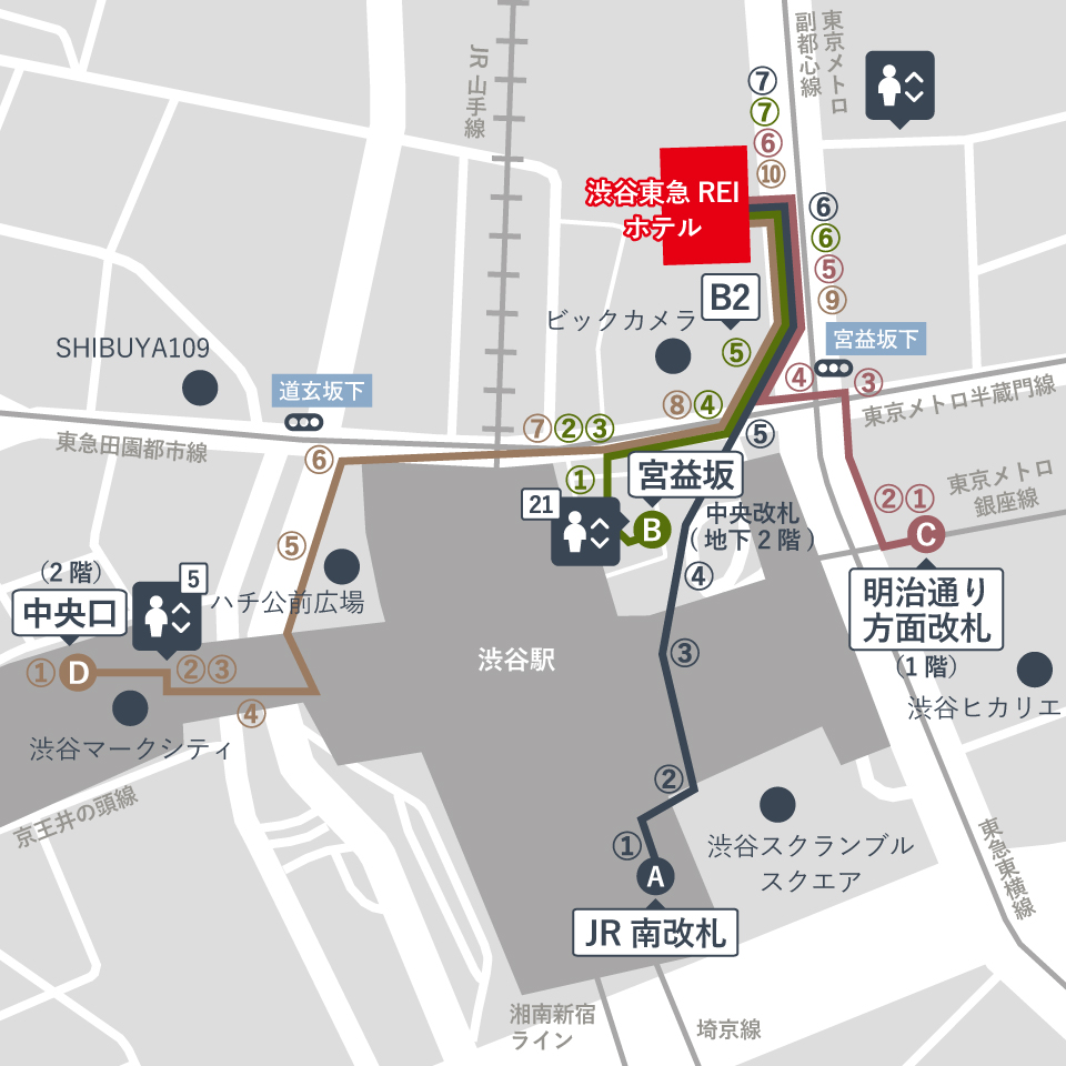B 渋谷駅(東京メトロ・東急線)宮益坂中央改札からホテルまでの経路