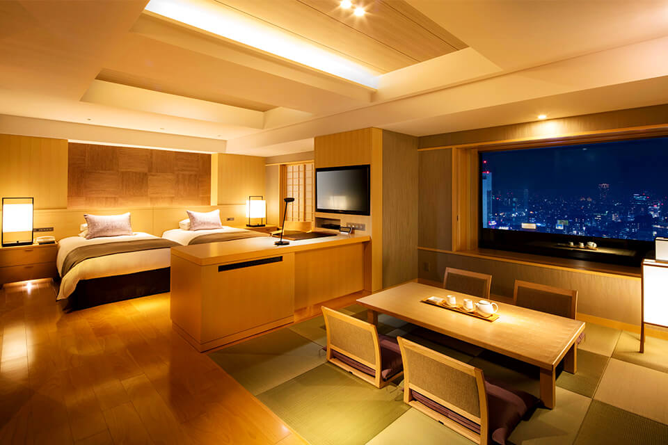 渋谷のランドマーク「セルリアンタワー 東急ホテル」。高層階からは東京の美しい夜景が一望でき、贅沢なひとときをお楽しみいただけます。洗練された和モダン空間で、ゆったりとしたやすらぎの時をお過ごしください。