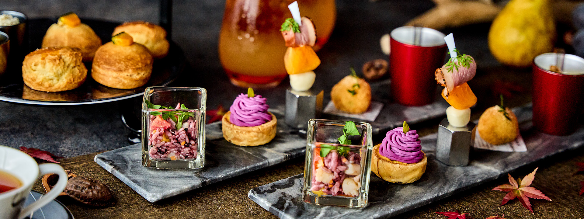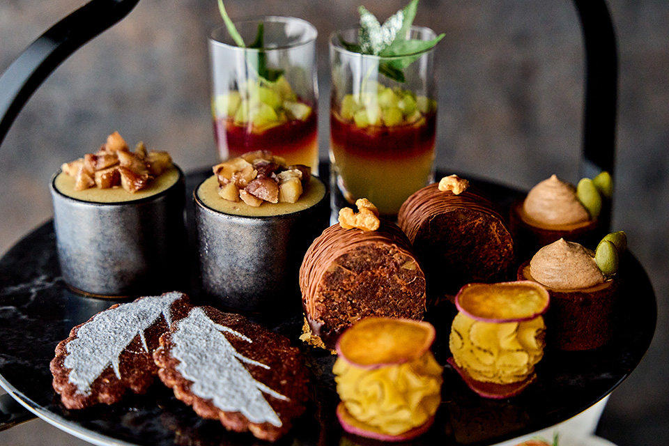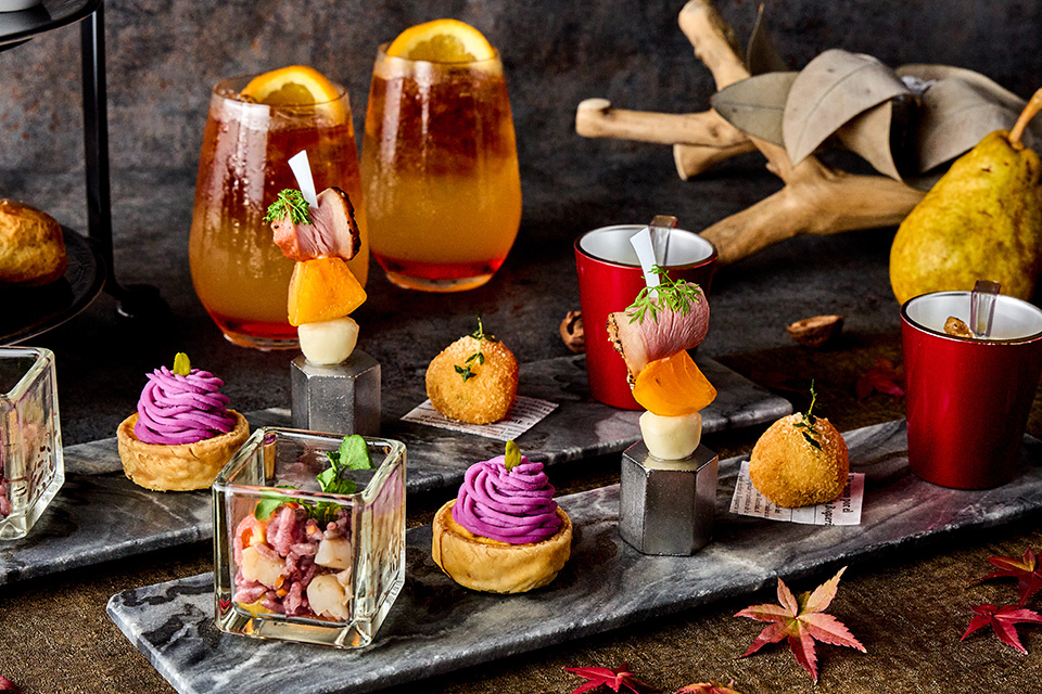 今年の秋のアフタヌーンティーは、“美味しい=茶色い”をテーマに、栗・さつまいも・かぼちゃをふんだんに使った見た目も大人なこっくりブラウンな秋を堪能するアフタヌーンティーをご用意いたします。素材本来の味わいが楽しめる品からナッツやフルーツのアクセントをプラスした品まで、さまざまな秋の味覚をお楽しみいただきます。