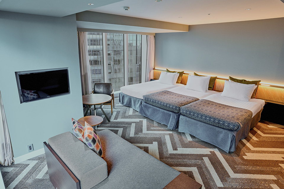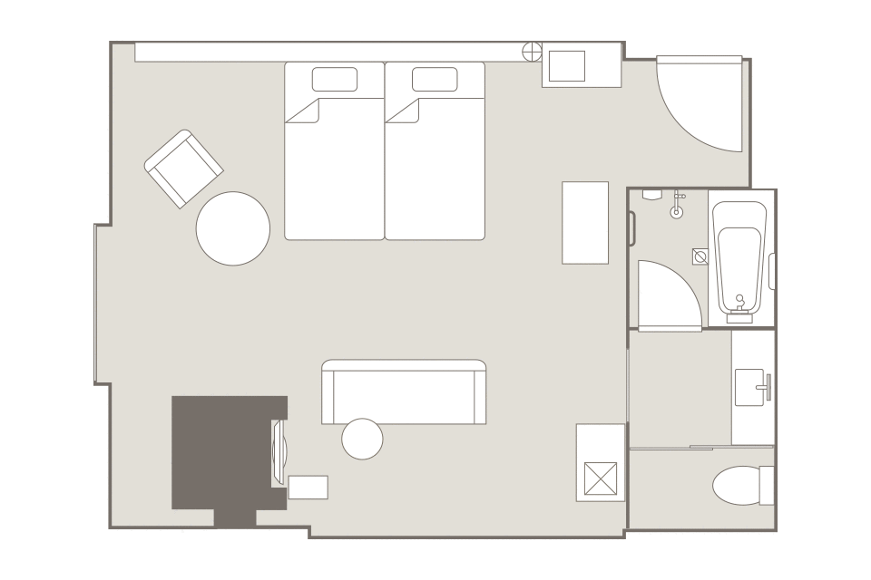 お部屋の間取りはあくまで一例です。面積や家具の配置、備品などはお部屋により異なりますので、あらかじめご了承ください。