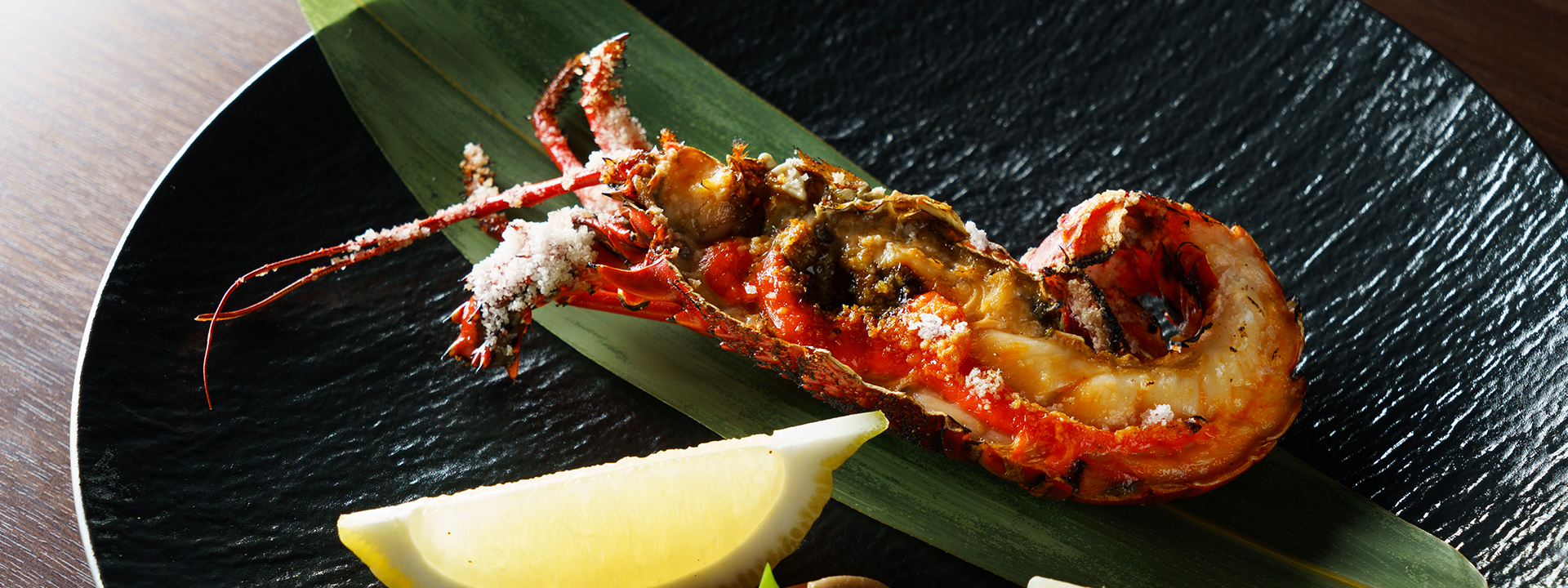 2)下田産伊勢海老の塩焼き 南伊豆産レモンと野菜の炊き合わせを添えて