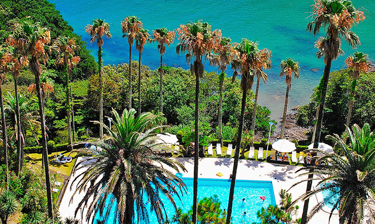 目の前に広がるナティエブルーの海、椰子の葉が潮風にそよぐガーデン。