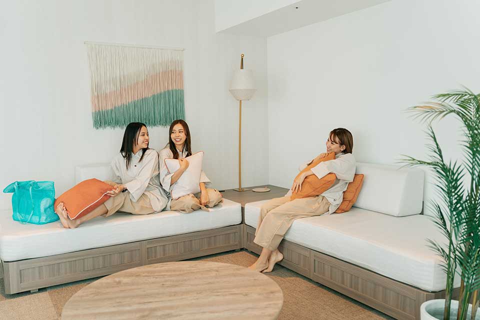 前浜ビーチに隣接している客室は、ゆったりと設計さており、各部屋のバルコニーも大型サイズ。潮風を感じながらバルコニーで眺めるサンセット・シーンが、この上ない贅沢なひと時を与えてくれます。