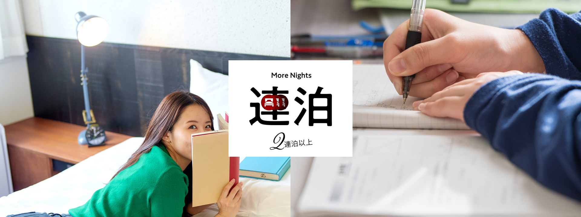 連泊ならゆとりが生まれ、レジャーからビジネスの利用までご滞在をゆっくりとお楽しみいただけます。5日間以上のウィークリーステイプランもおすすめです。