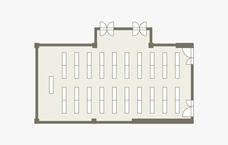 会議、セミナー、説明会、試験会場、各種パーティーなど多目的にご利用いただけます。スクール形式最大32名さま、ロの字形式24名さま、立食パーティー40名さま、着席パーティー32名さままで対応可能です。