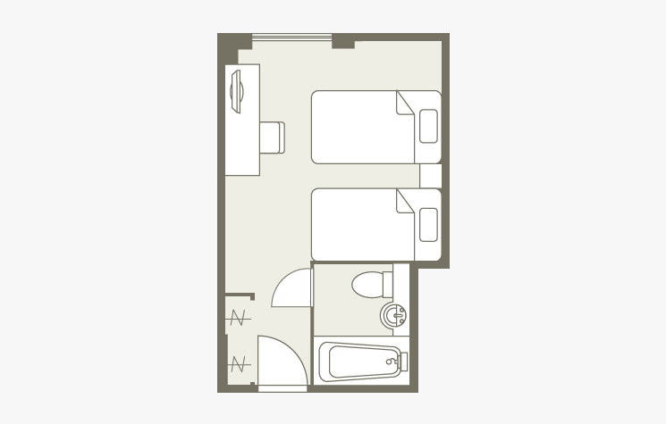 お部屋の間取りはあくまで一例です。面積や家具の配置、備品などはお部屋により異なりますので、あらかじめご了承ください。