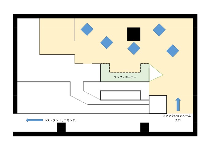 スクール形式の会議室利用で最大24名さま、着席の宴会形式及び立食のブッフェスタイルでご利用の場合は最大40名さままでご利用いただけます。
