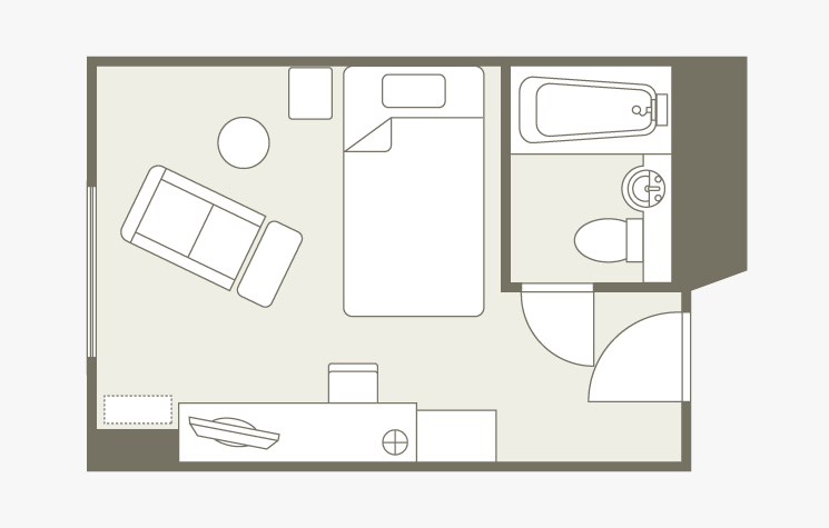 お部屋の間取りはあくまで一例です。面積や家具の配置、備品などはお部屋により異なりますので、あらかじめご了承ください。